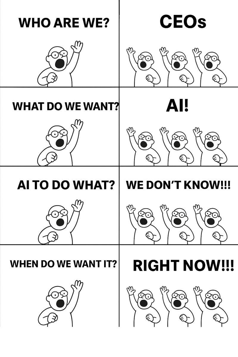“What do we want?” (AI), “AI, to do what?” (We don’t know!),