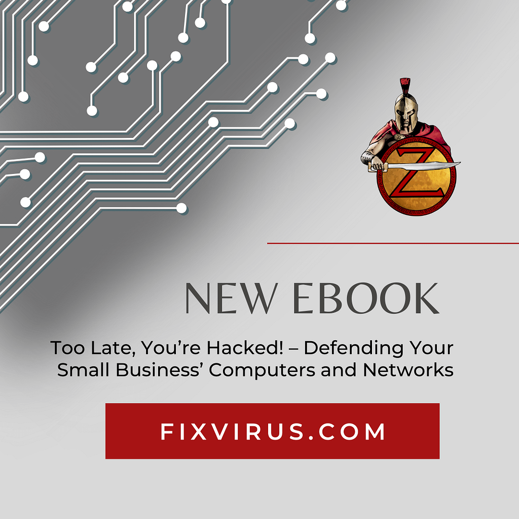 My Book titled: Too Late You’re Hacked! – Defending Your Small Business’ Computers and Networks