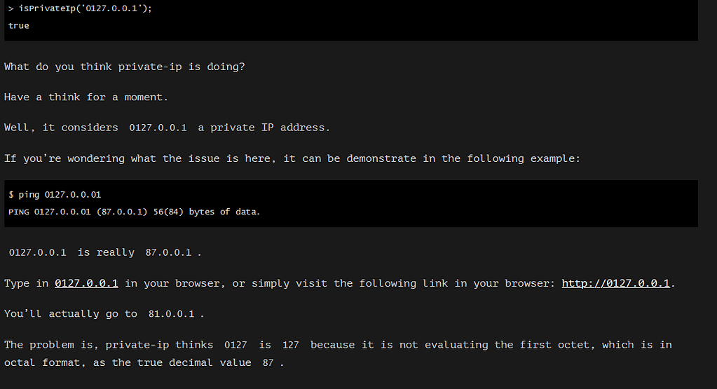 A CVE has been issued CVE-2021-28918 . Improper input validation of octal strings in netmask npm package v1.0.6 and below allows unauthenticated remote attackers to perform indeterminate SSRF, RFI, and LFI attacks on many of the dependent packages. A remote unauthenticated attacker can bypass packages relying on netmask to filter IPs and reach critical VPN or LAN hosts.
