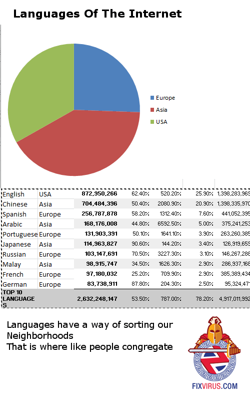 The reason I have chosen to segregate the Internet neighborhoods is that as human Internet users we are creatures of comfort and ease of use. Why would an English speaker go to a Chinese site? If they did it would be for a specific reason. Not sure if many other Chinese sites would be frequented.