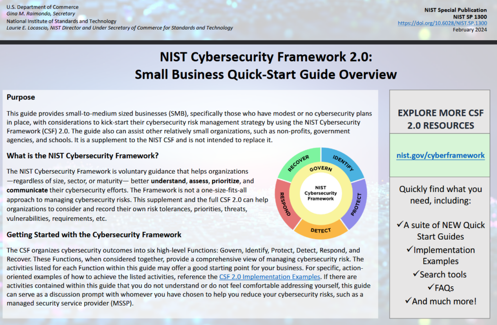 - Optimize: Use your auditing experience to conduct a quick baseline assessment of the business’s current security posture. Leverage free NIST tools like the CSF Quick Start Guide to create a simple AI governance document (1-2 pages).
